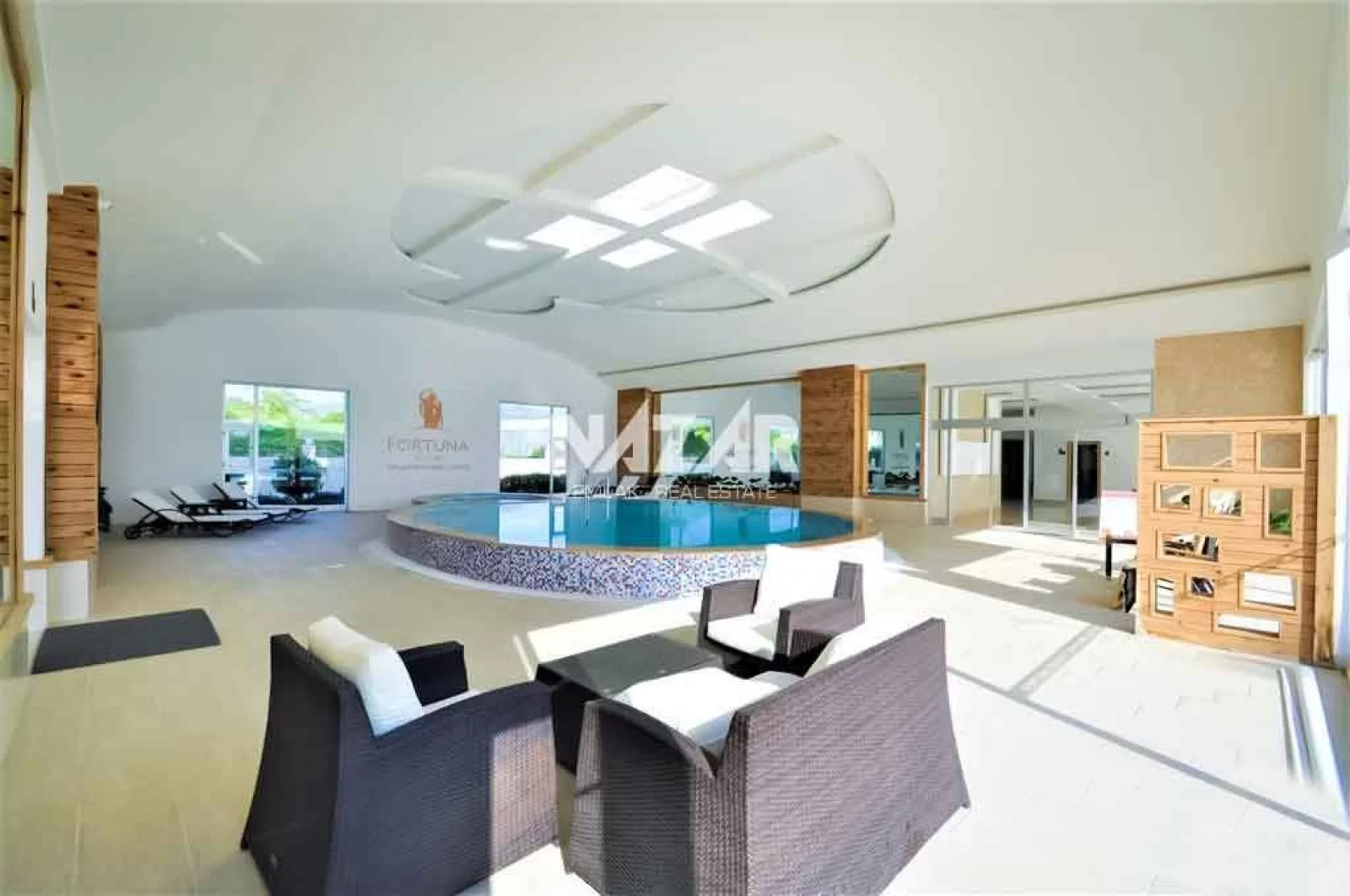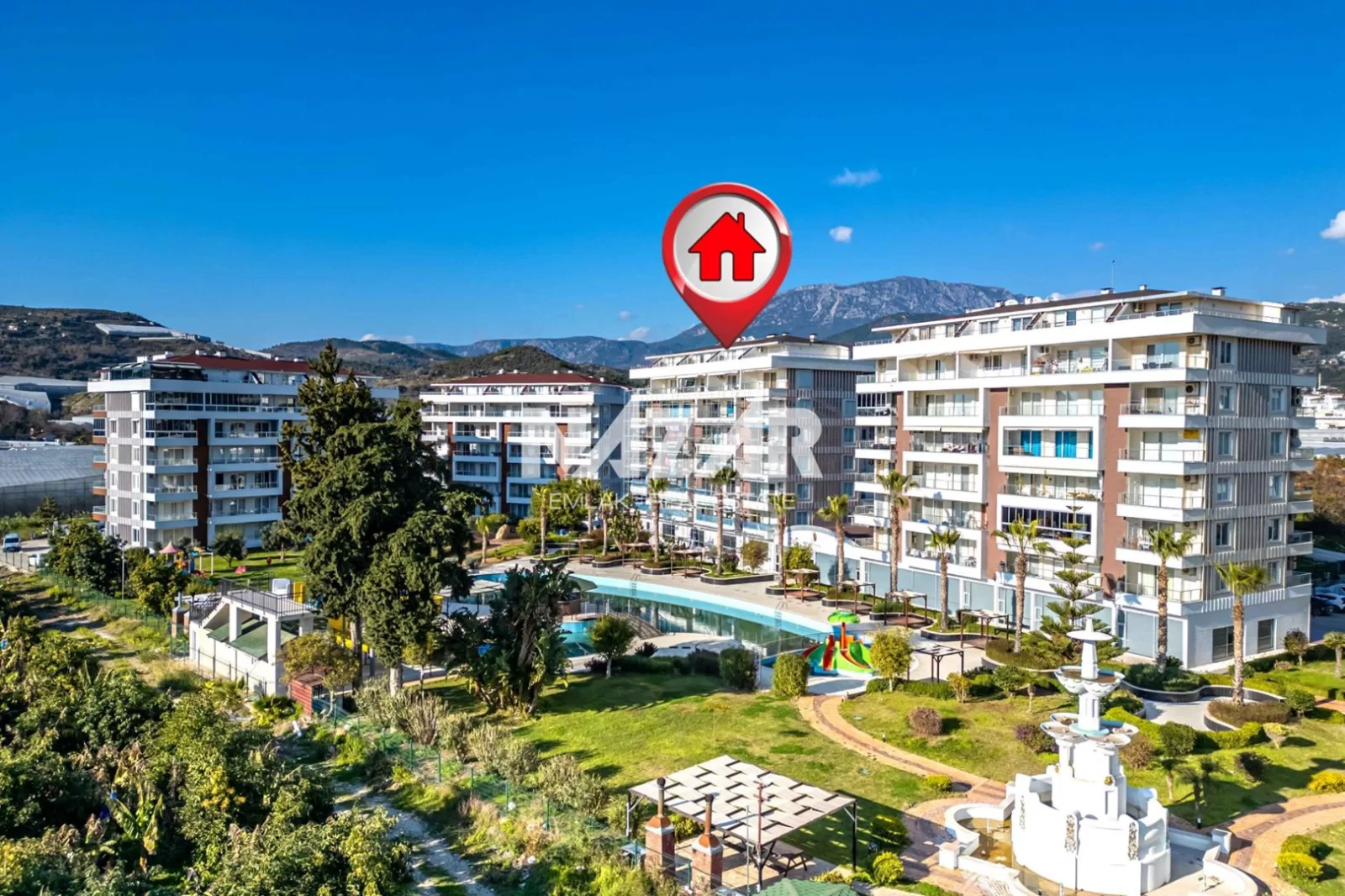 The complex offers many social amenities, including indoor and outdoor swimming pools, a Turkish bath, sauna, gym, aquapark, children's playground, walking paths, barbecue areas, security, parking and free WiFi. You can access this apartment through Nazar Real Estate.