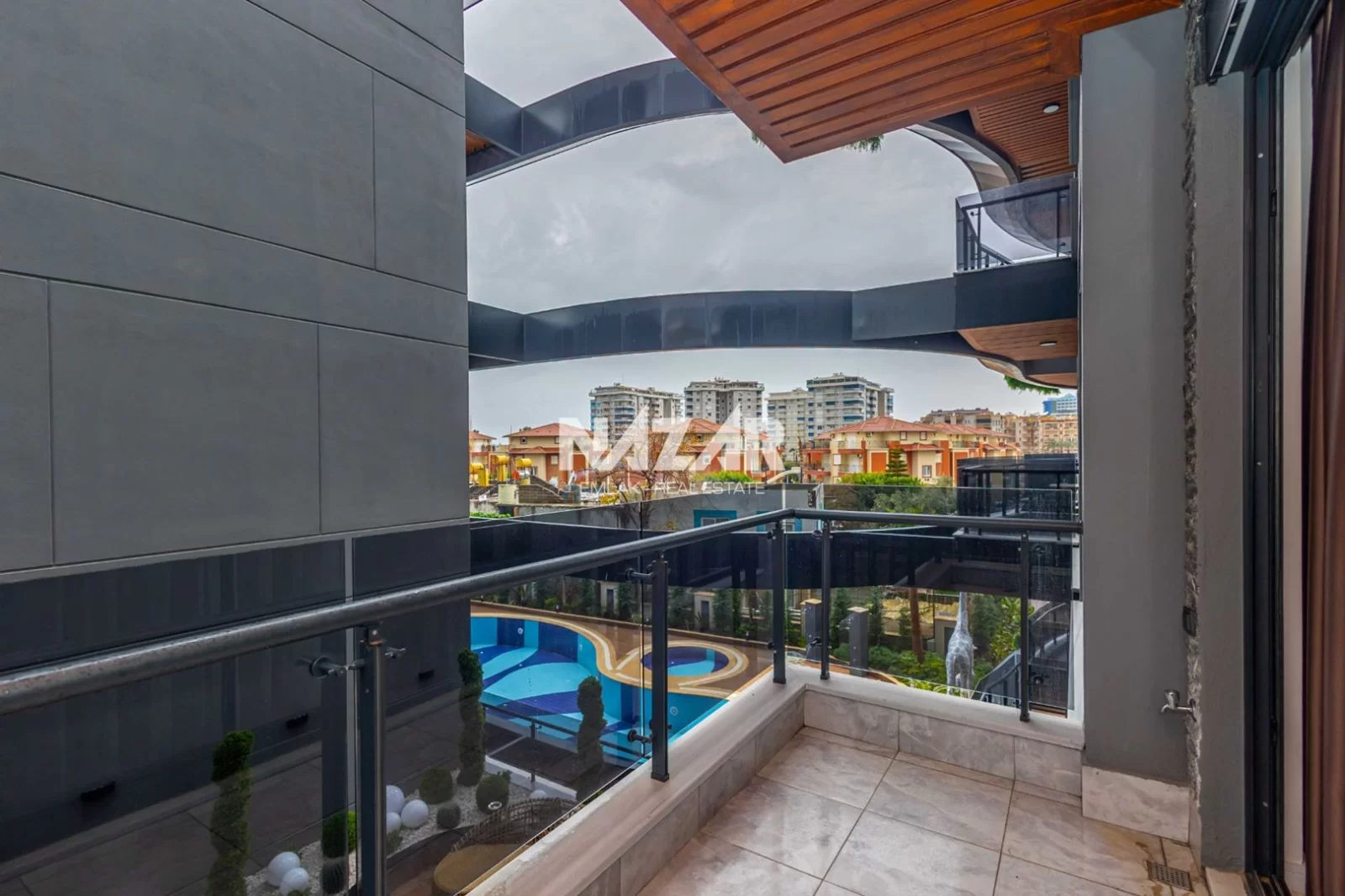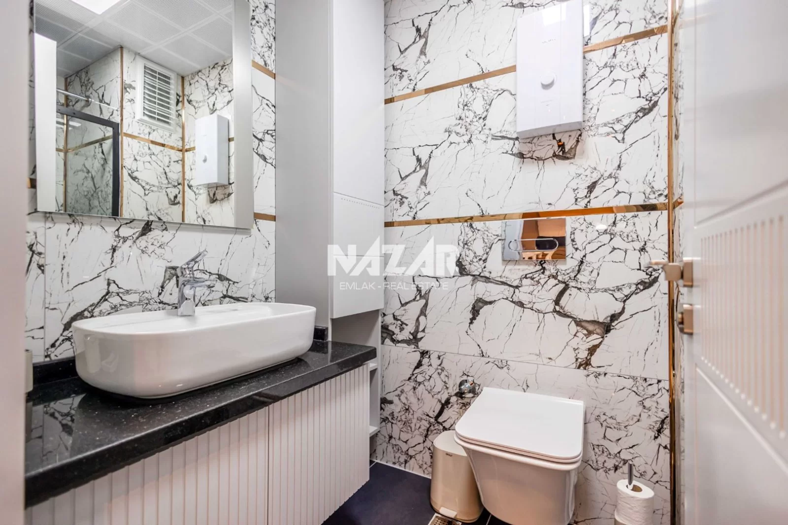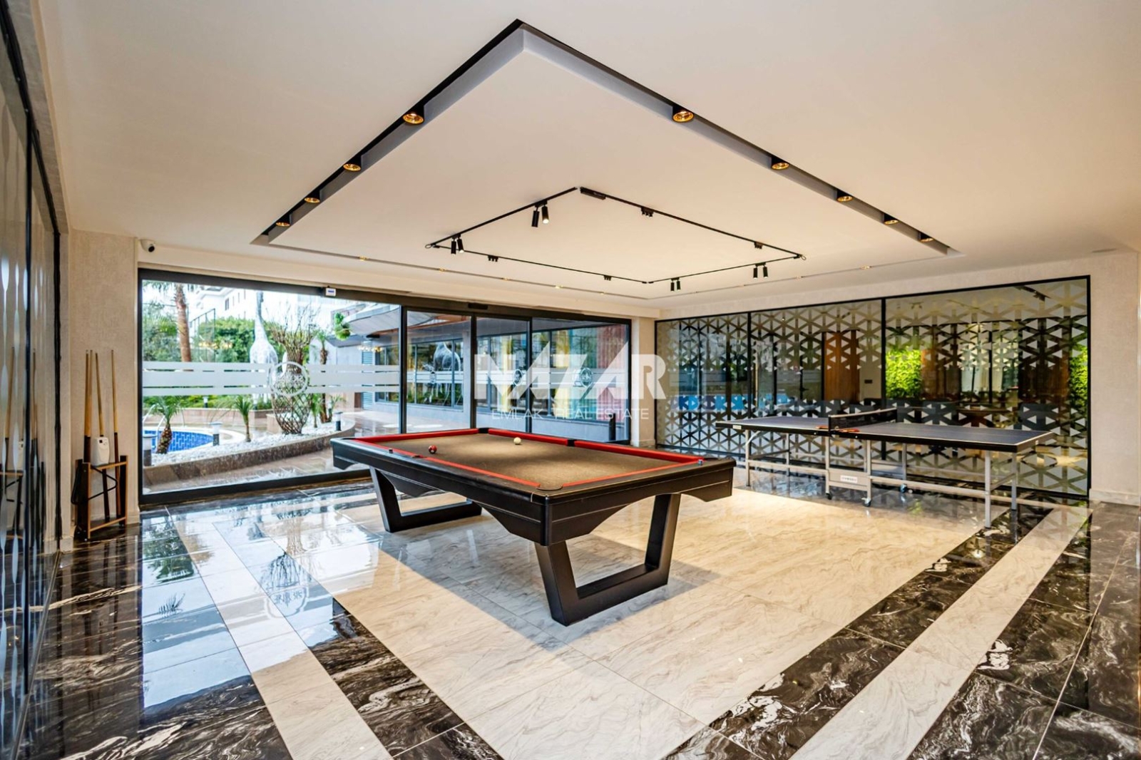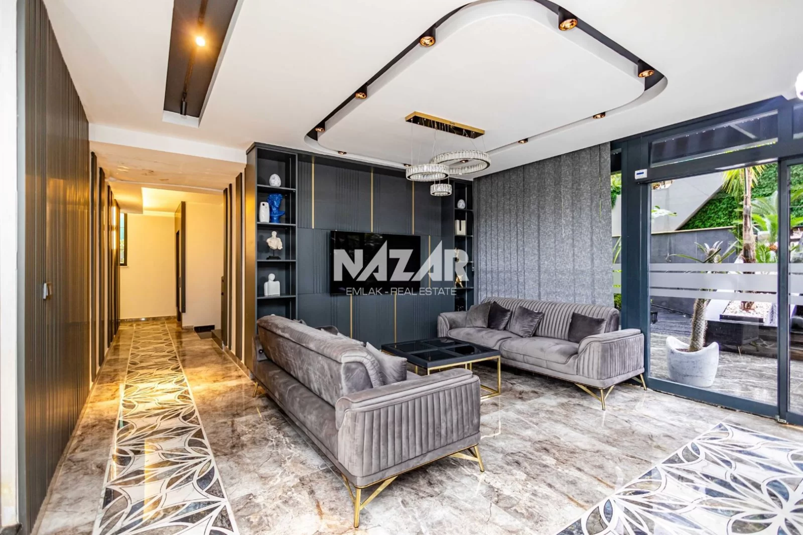 The site, designed with a 5-star hotel concept, offers amenities such as indoor and outdoor swimming pools, a fitness centre, sauna, steam and massage rooms, relaxation areas, a barbecue area, a children's play area, and a lobby. This rental apartment can be accessed through Nazar Emlak.