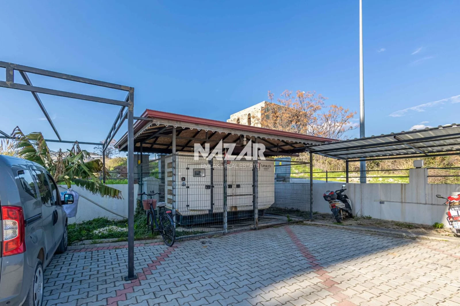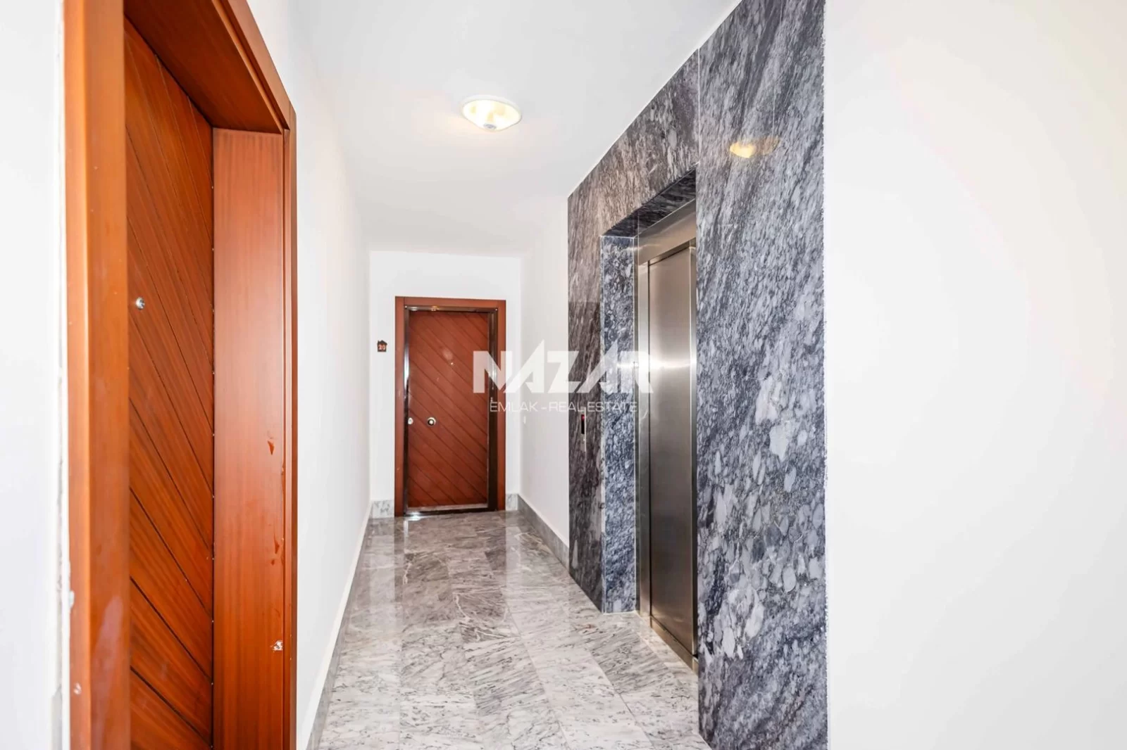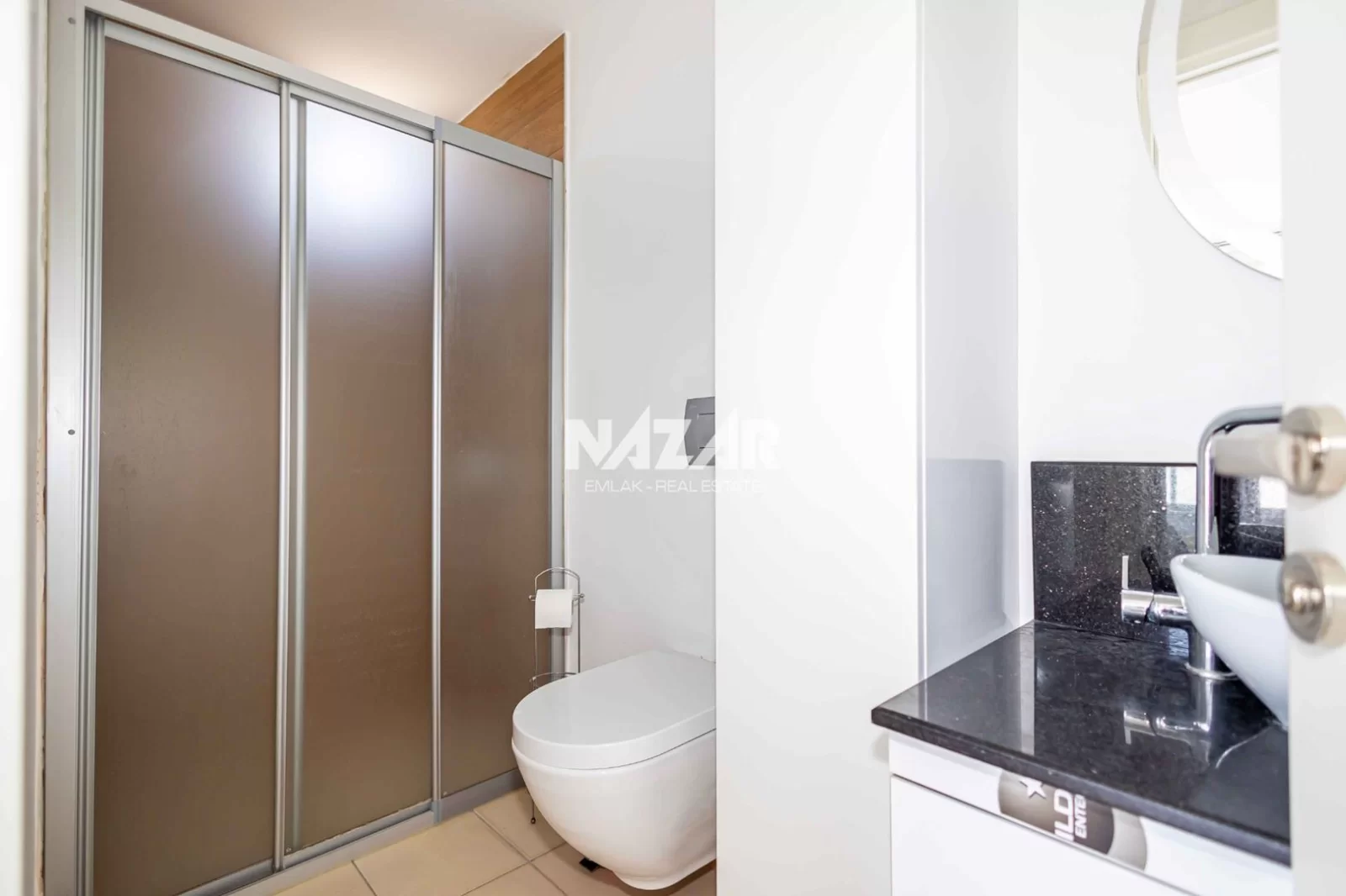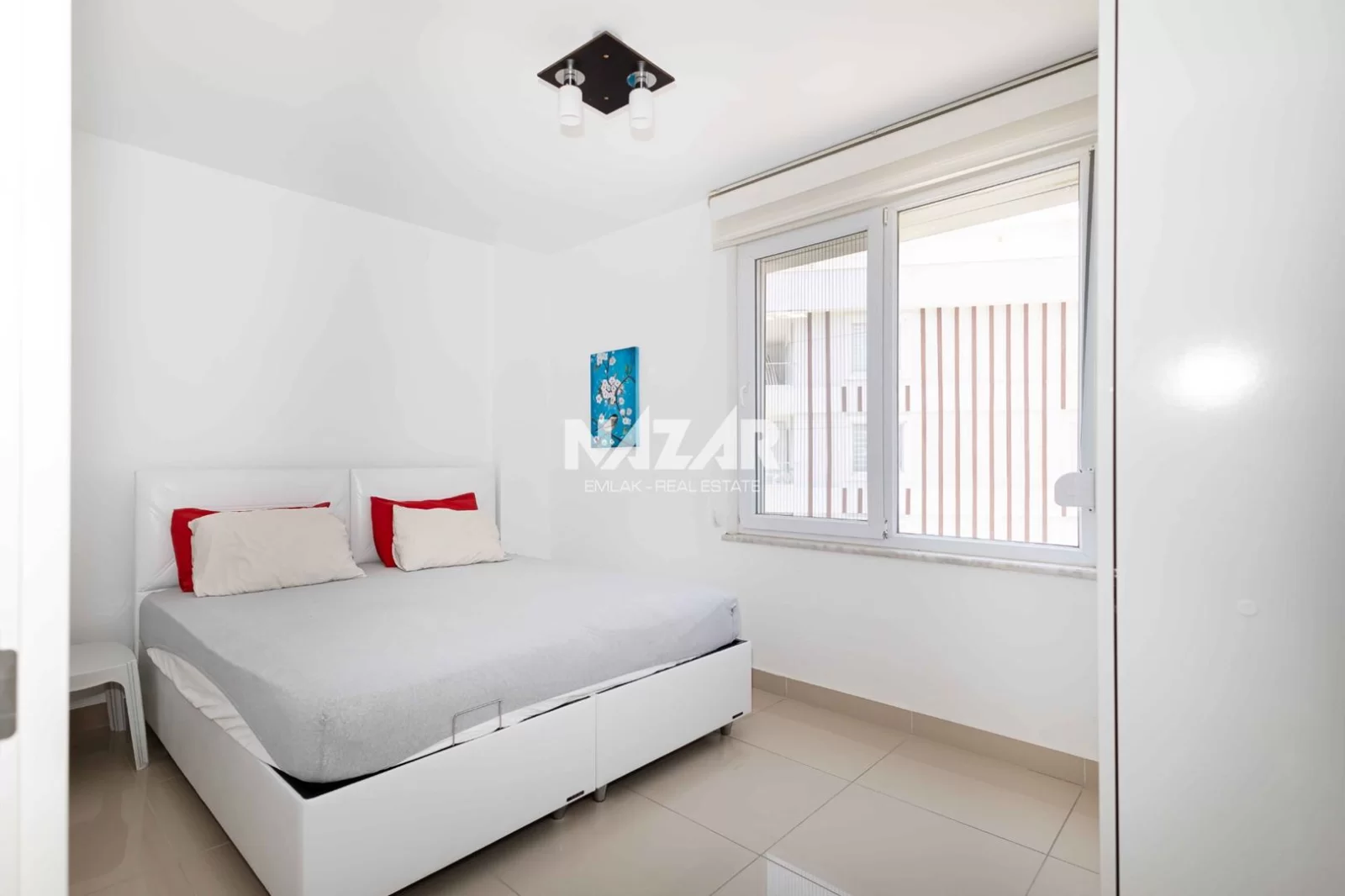 The site offers numerous social amenities, including indoor and outdoor swimming pools, a Turkish bath, sauna, gym, aquapark, children's playground, walking paths, barbecue areas, security, parking, and free WiFi. You can access this apartment, which offers a peaceful and comfortable lifestyle, through Nazar Emlak.