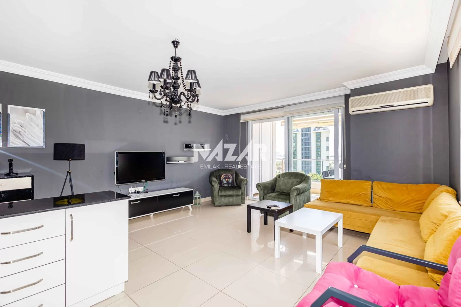 4Located in the Fortuna Resort complex in Alanya Demirtaş Mahallesi, this 105 m² furnished apartment boasts stunning sea views. The apartment has 2 bedrooms, 1 living room, 1 bathroom/WC and 1 balcony, and faces south, west and north. The flat, which has automatic shutters, is located on the 4th floor of a 6-storey building and is fully furnished with all the necessary household items.