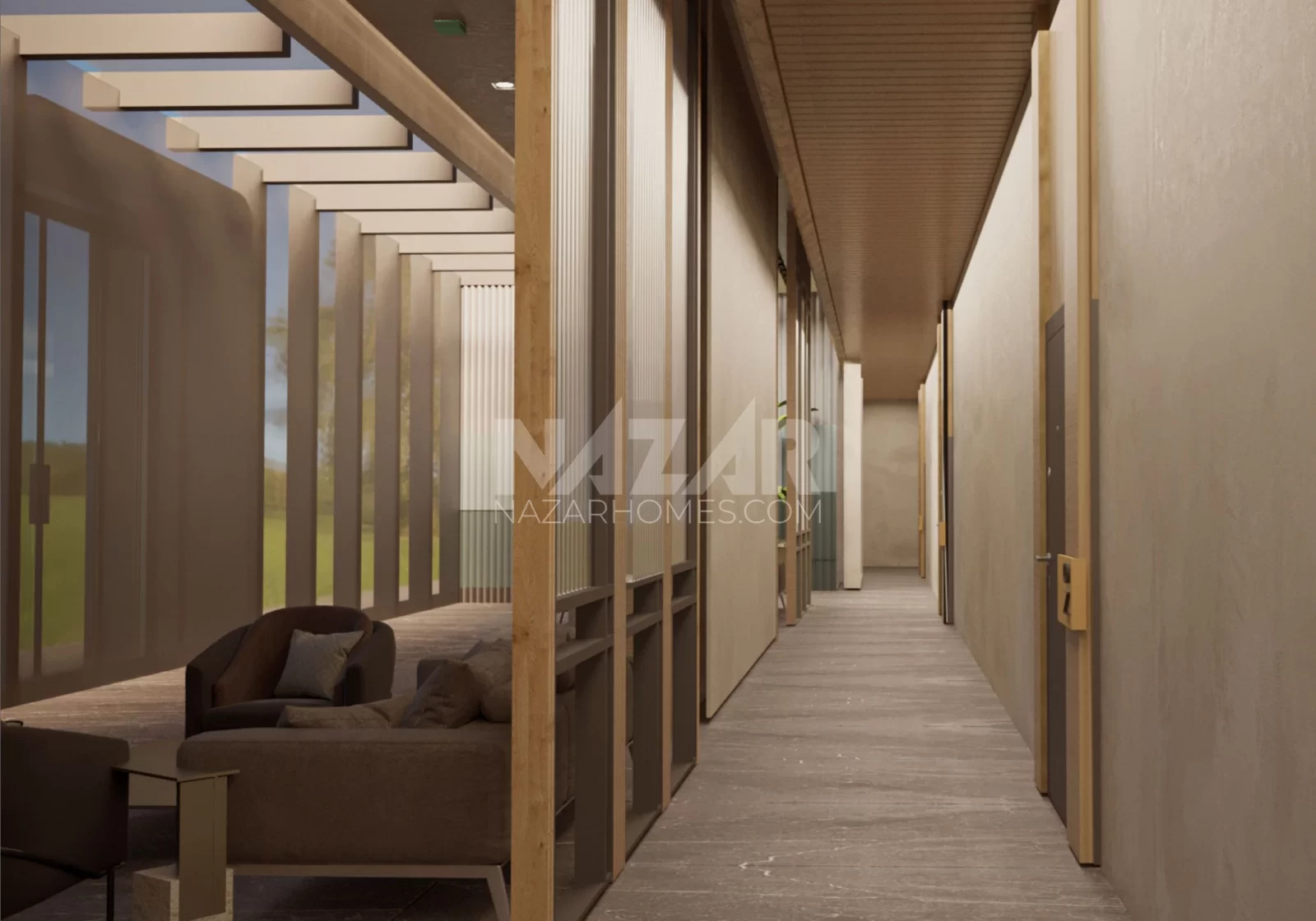 The apartments, all facing south, host magnificent social areas. Surrounded by social themes and amenities, with gardens on the ground and comfortable terraces on the upper floors, the project presents a concept resembling a ship. Embracing the philosophy of sustainability, the project incorporates environmentally friendly renewable energy systems.