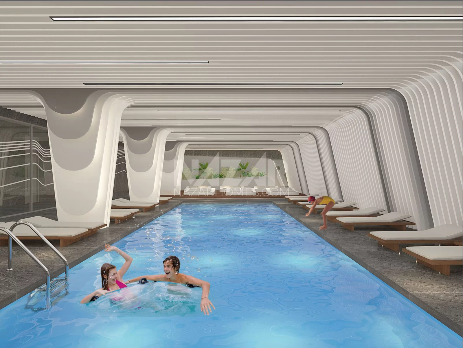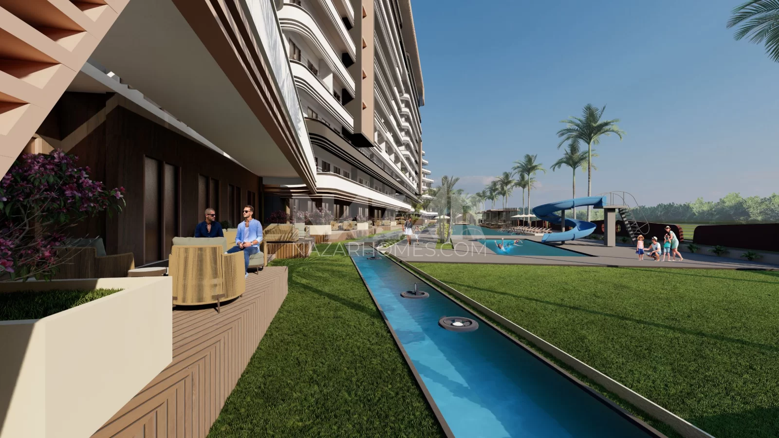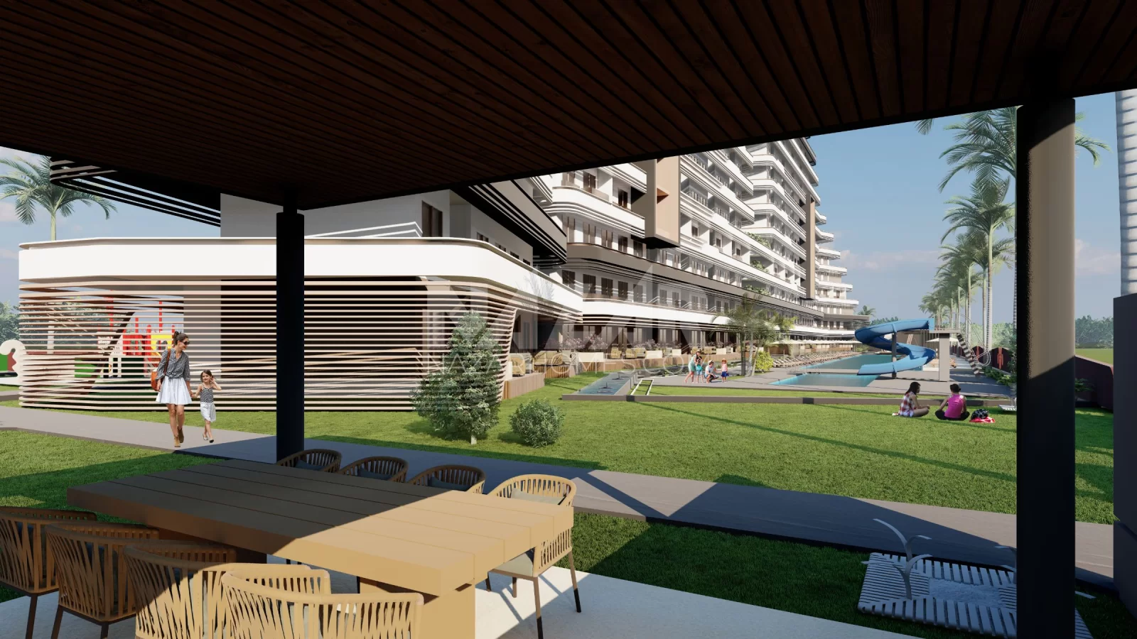 The project not only offers residences but also stands out with its social amenities and services. Featuring indoor and outdoor swimming pools, tennis and basketball courts, a fitness center, an aquapark, a children's playground, and more, the project provides various facilities for residents. Additionally, concierge services, housekeeping systems, VIP car rental, security, and camera systems prioritize the comfort and safety of residents.