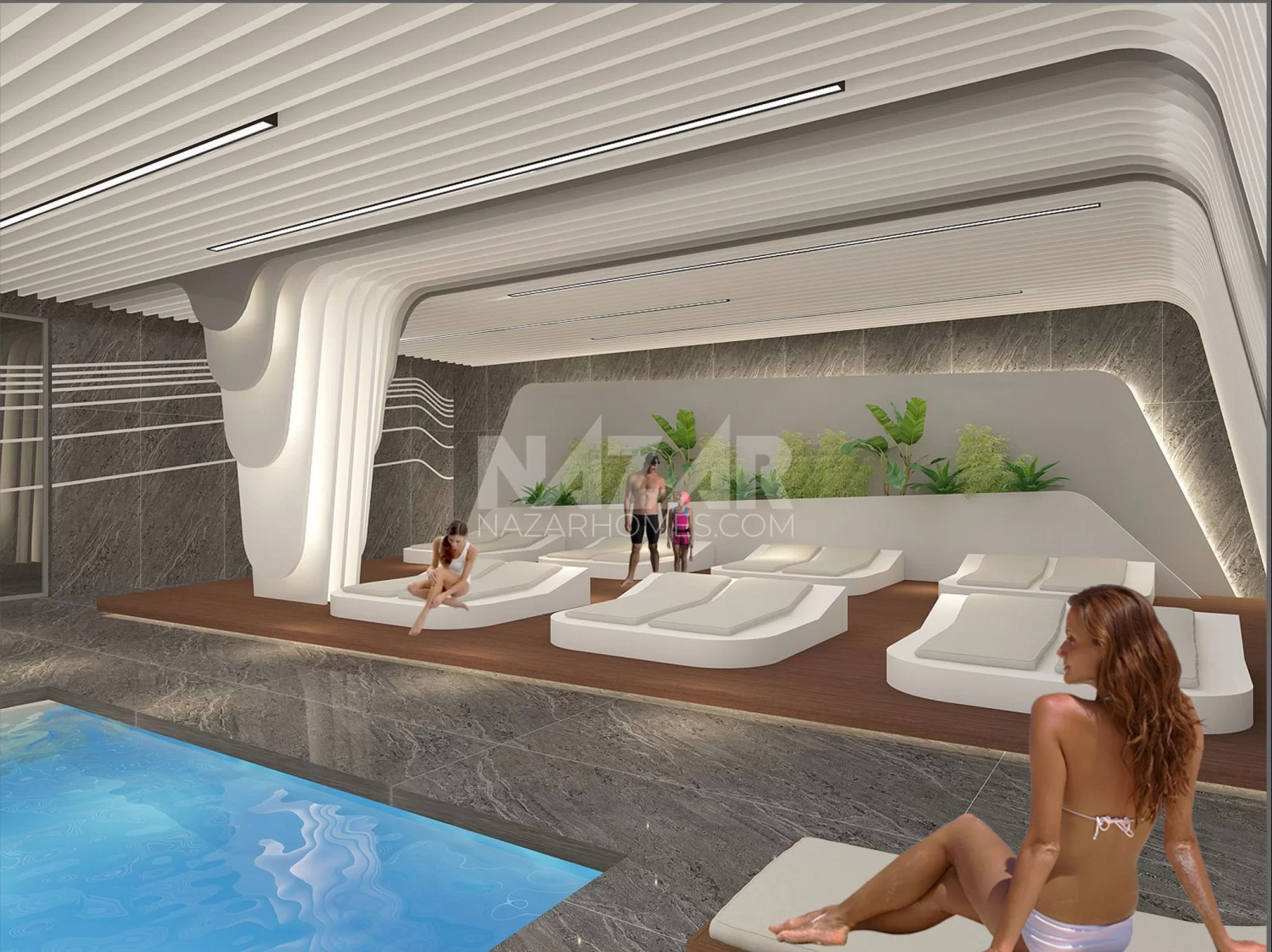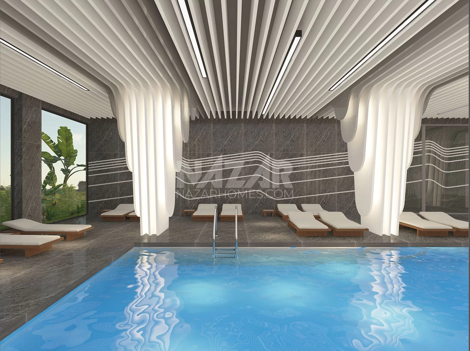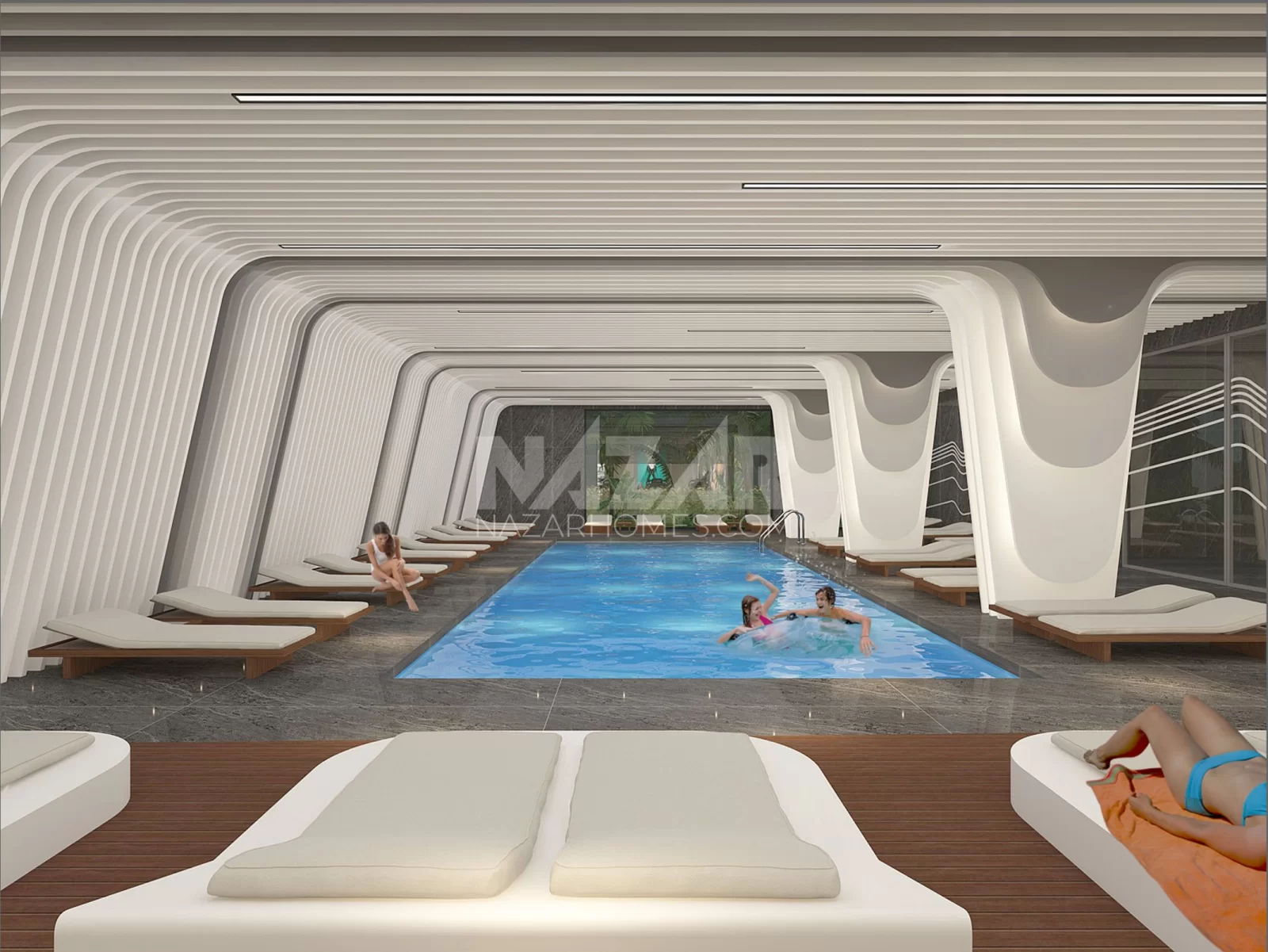 The project not only offers residences but also stands out with its social amenities and services. Featuring indoor and outdoor swimming pools, tennis and basketball courts, a fitness center, an aquapark, a children's playground, and more, the project provides various facilities for residents. Additionally, concierge services, housekeeping systems, VIP car rental, security, and camera systems prioritize the comfort and safety of residents.