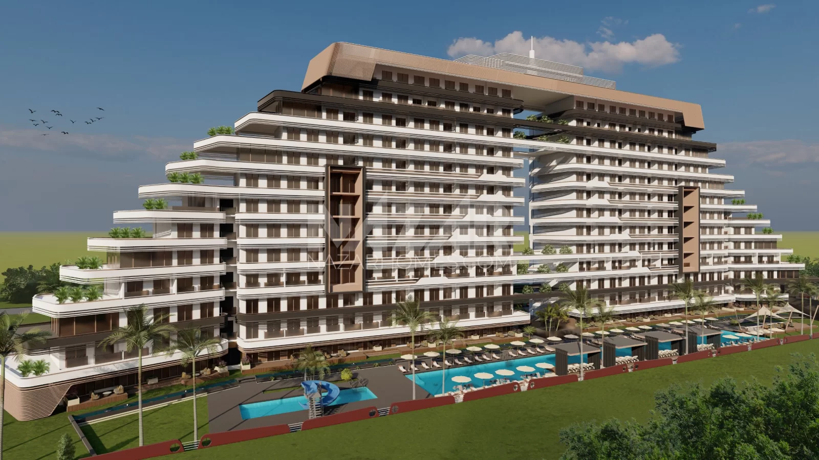 1 <> 2This impressive project, situated in the coveted region of Aksu in Antalya, stands out as the most remarkable residential project with its extraordinary architecture and a towering structure of 12 floors, spanning 195 meters. With only 1 office and 173 apartments, the project offers a wide range of residences from 1+1 to 3+1.